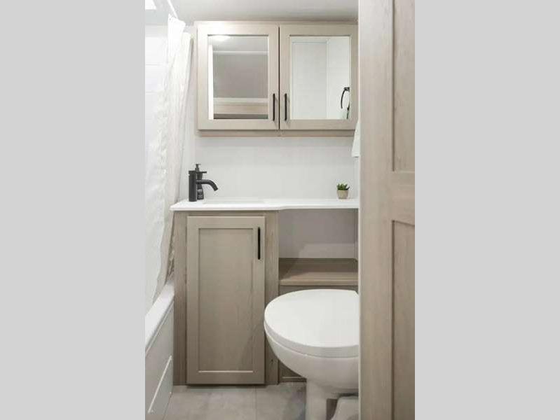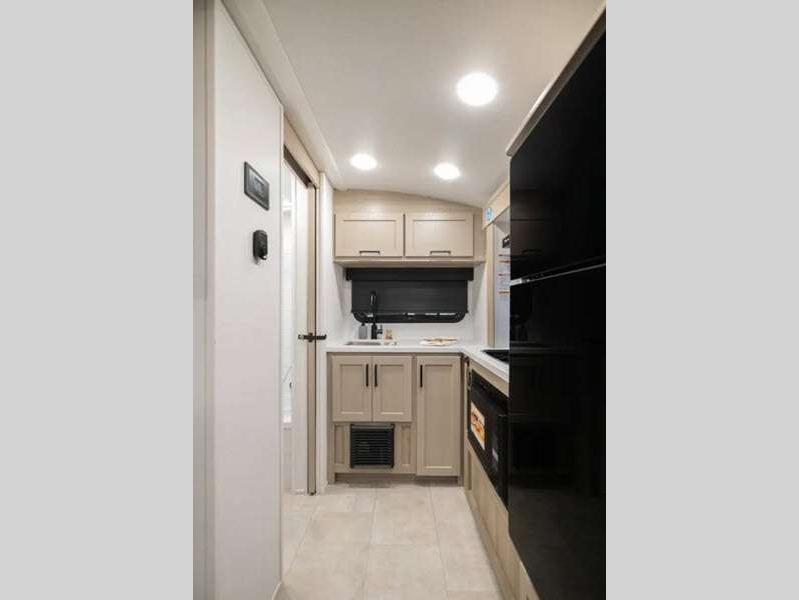 The complete composite wall construction and fully laminated roof provide a durable and sleek travel trailer you are sure to love. Each model features bigger nitrogen-filled tires and MORryde Solid, Supported Steps that will allow you to have much safer and secure footing for when going in out and of your travel trailer. A refrigerator also comes standard, along with back-up camera prep and more at-home comforts.