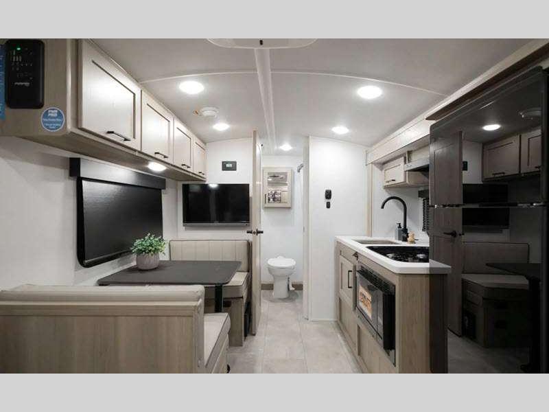 Sleeps 5 Slides 1 Length 21 ft 2 in Ext Width 7 ft 8 in Ext Height 10 ft 4 in Hitch Weight 501 lbs Dry Weight 3843 lbs Cargo Capacity 1155 lbs Fresh Water Capacity 31 gals Grey Water Capacity 27 gals Black Water Capacity 27 gals Furnace BTU 20000 btu Number Of Bunks 2 Available Beds Full Refrigerator Type 12V Convection Cooking Yes Cooktop Burners 3 Number of Awnings 1 LP Tank Capacity 20 lbs Water Heater Type Gas/Electric AC BTU 13500 btu TV Info 12V Smart TV Awning Info 14' Power Axle Count 1 Number of LP Tanks 2 Shower Type Standard Solar Wattage 200 watts Similar Floorplans