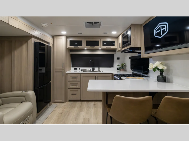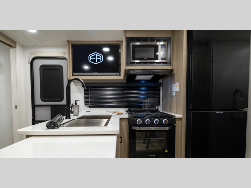 Sleeps 2 Slides 2 Length 25 ft 11 in Ext Width 8 ft Ext Height 10 ft 11 in Hitch Weight 778 lbs Dry Weight 6177 lbs Cargo Capacity 1601 lbs Fresh Water Capacity 54 gals Grey Water Capacity 58 gals Black Water Capacity 29 gals Furnace BTU 35000 btu Available Beds Queen Refrigerator Type 12 Volt Cooktop Burners 3 Number of Awnings 1 LP Tank Capacity 30 lbs Water Heater Type Quick Recovery AC BTU 15000 btu TV Info LR 32" TV Awning Info 19' Power with Adjustable Rain Dump and LED Lights Axle Count 2 Number of LP Tanks 2 Shower Type Radius Similar Floorplans